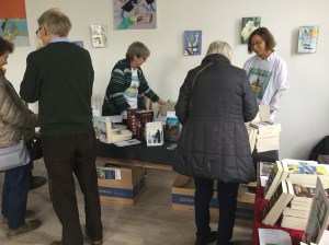 Authors at ClaphamBook Festival 2019 are (L-R, top to bottom) Prof. Kate Williams, Ursula Buchan, Elizabeth Buchan, Ursula Buchan, Henry Hemming, Michele Roberts, Aida Edemariam, Michele and Aida with Paula Johnson, Simon Berthon, Frank Gardner OBE. Jago Poynter (guitarist), book stall volunteers.